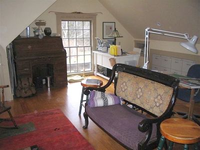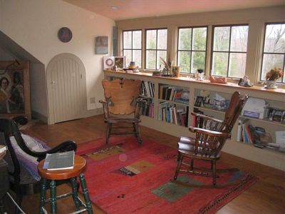 The upper room as it is called, was specially designed and renovated to provide a quiet space for client meetings, reflection, and for contemplative design work. This room stays true to its purpose. You feel an immediate zen-like calm as you enter. There is a sitting area with a couch and rocking chairs, a large antique rolltop desk and a full wall of small windows. This is the place to open your heart and share stories and photos of the loved one you're here to remember and Karin will guide you each step of the way.