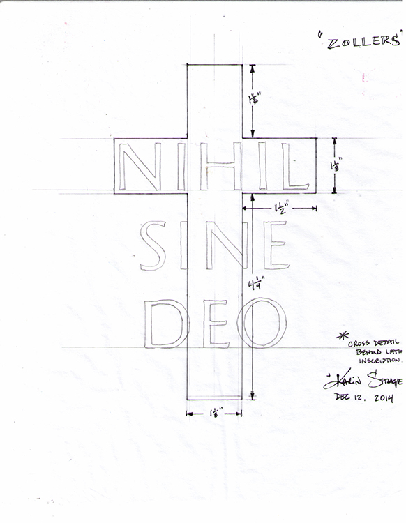 The Latin shadowed by a cross translates to nothing without god.