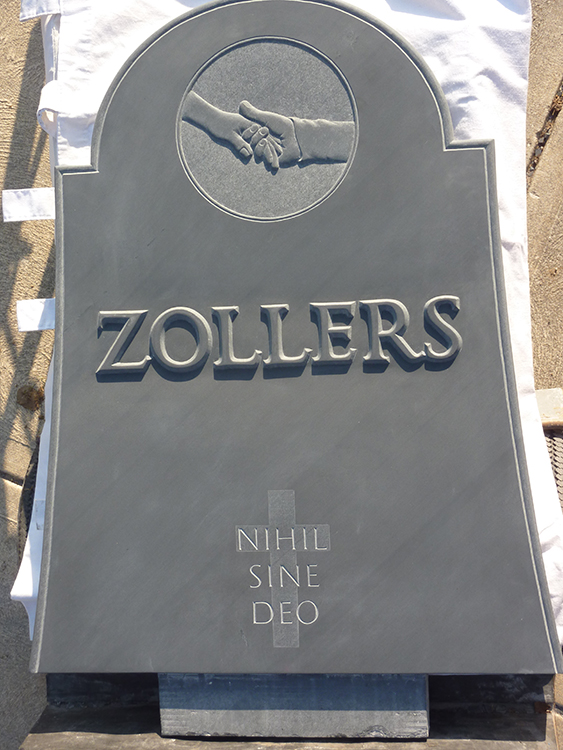 The image of clasped hands comes from the couple’s love of holding hands, at the moment of Katheryn’s death the couple were holding one another's hands.