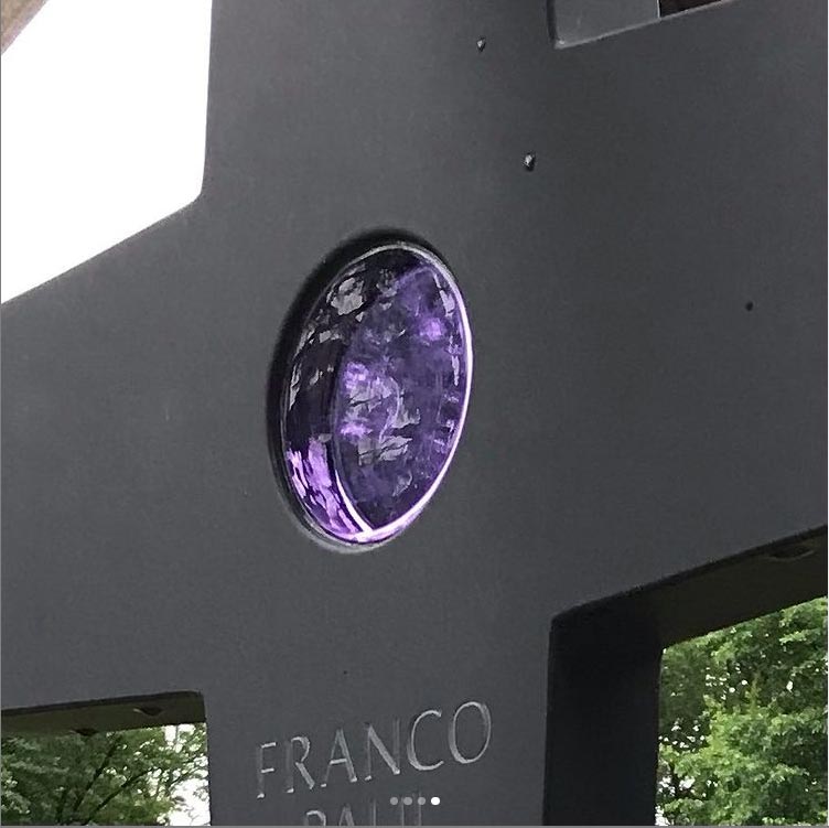The glass is delicately placed inside the stone, adding a simple sculpture to this family memorial.