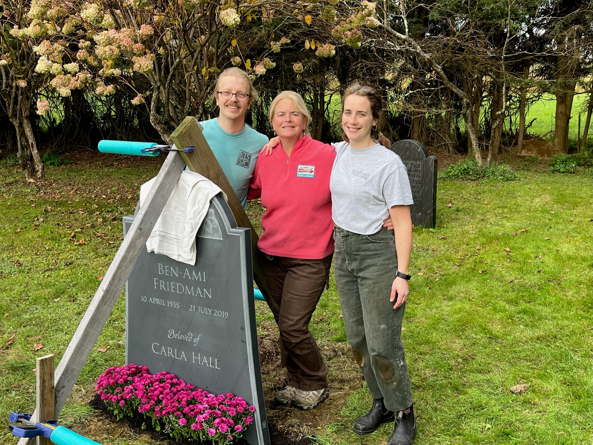 When working in stone, progress is not always visible in a single day, but a year's time reveals the chisel's steady work. And, despite our new knowledge of pneumatic stone-cutting acquired through a workshop with Al Williams from Chester Granite, we know that the work done over time is what creates a lasting memorial.