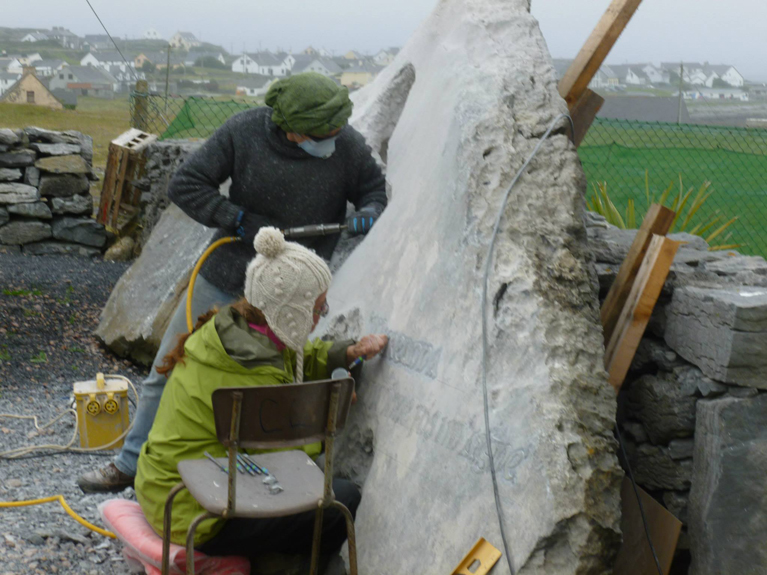 The Fisherman's memorial is hand carved in place on Inisheer, the smallest of the Aran Islands off the west coast of Ireland. It was created in collaboration with Sculptor Alexandra Morosco. The monument serves to remember those that the sea has taken. Especially island fisherman whose bodies were never found and could not be buried in the community cemetery.
