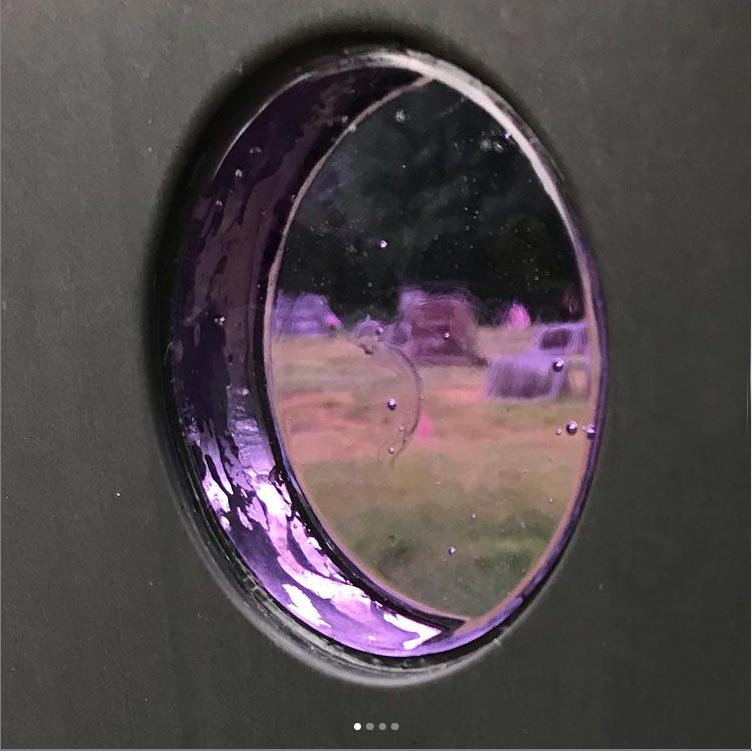 The glass is delicately placed inside the stone, adding a simple sculpture to this family memorial.