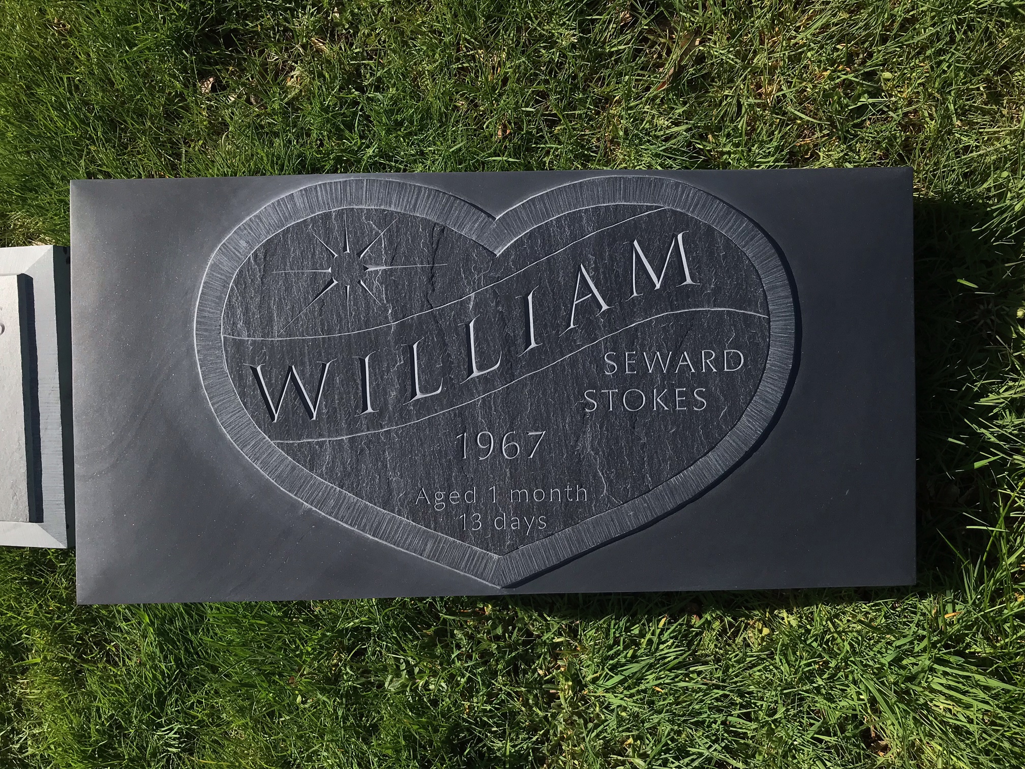 The sunbeam between Richard's birth and death years represent the brilliant soul he was. The sunbeam on baby Williams monument honors the light and love he gave to his father.