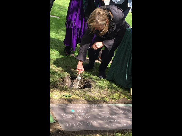 At Anita’s request we each were invited to help return Bud’s ashes to Mother Earth. A line was formed and one by one we scooped a silver spoonful of Bud’s ashes and poured them into the open earth.